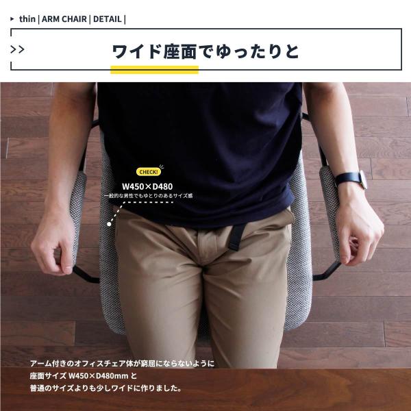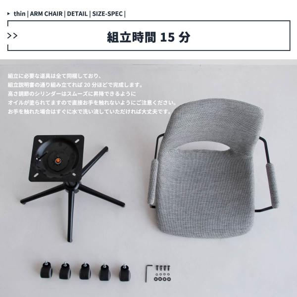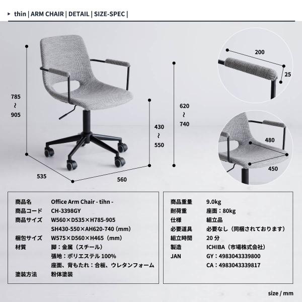 > Office Arm Chair -tihn- グレー キャスター付 デスクチェア 昇降式 テレワーク 在宅 リモートワーク IBCH-3398GY