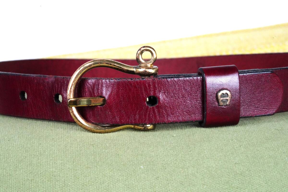 - 本物★ AIGNER アイグナー 本革製 ベルト 西ドイツ製 エンジ ワイン
