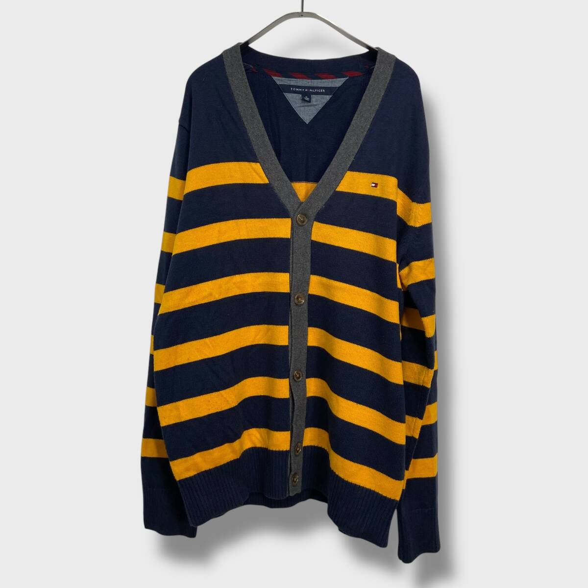 - 送料無料☆TOMMY HILFIGER☆ボーダー柄コットンニットカーディガン☆XL☆A25M