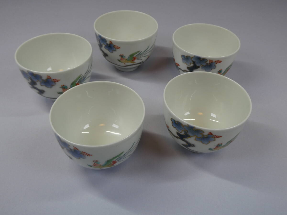 - 有田焼 柿右衛門 渦福銘 色絵鳳凰図 煎茶碗 五客揃 茶道具