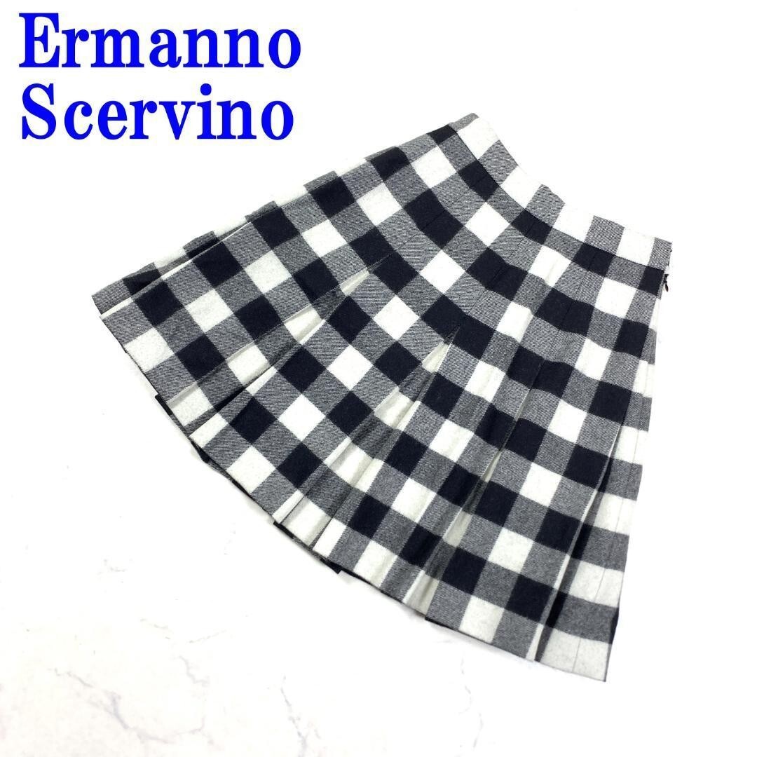 - エルマンノシェルヴィーノ ひざ丈スカート ウール チェックErmanno Scervino ブラック 白 ホワイト 黒 38 C2019