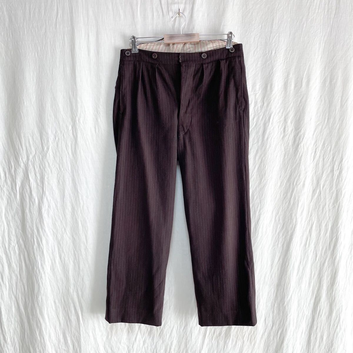 - 貴重 40s ユーロ ヴィンテージ 針刺し シンチバック スラックスパンツ W33 ブラウン サスペンダー フランス フレンチ アンティーク