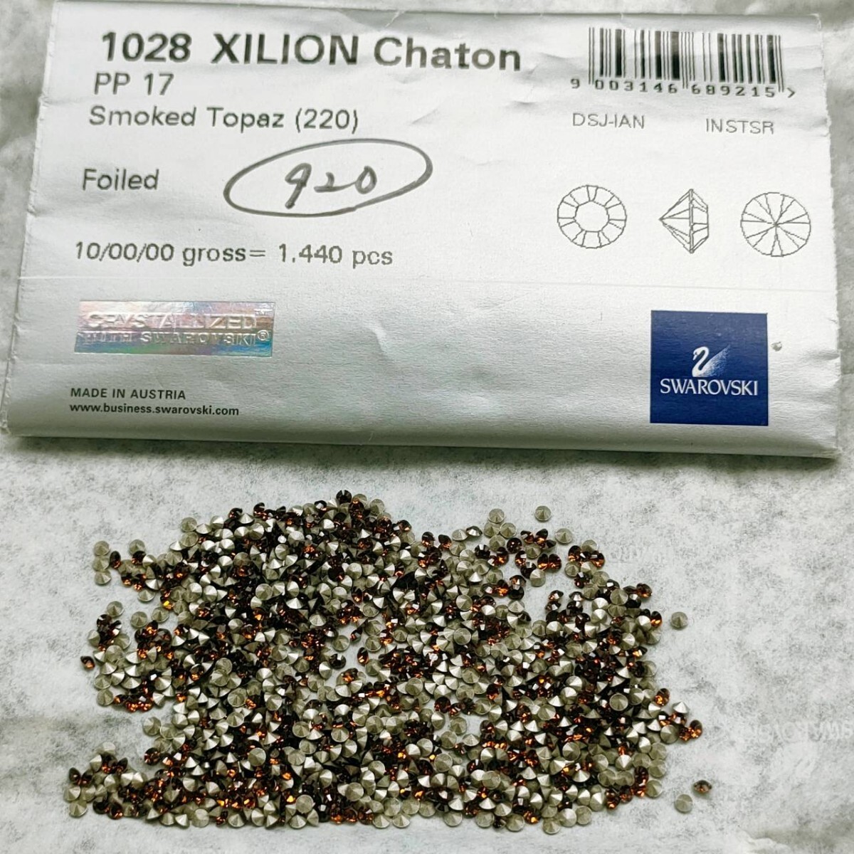 - ☆ほぼ未使用 SWAROVSKI スワロフスキー ヴィンテージ ルース 約800個 1028 17PP 10gross Smoked Topaz 220 スモークトパーズ 裸石 R-470