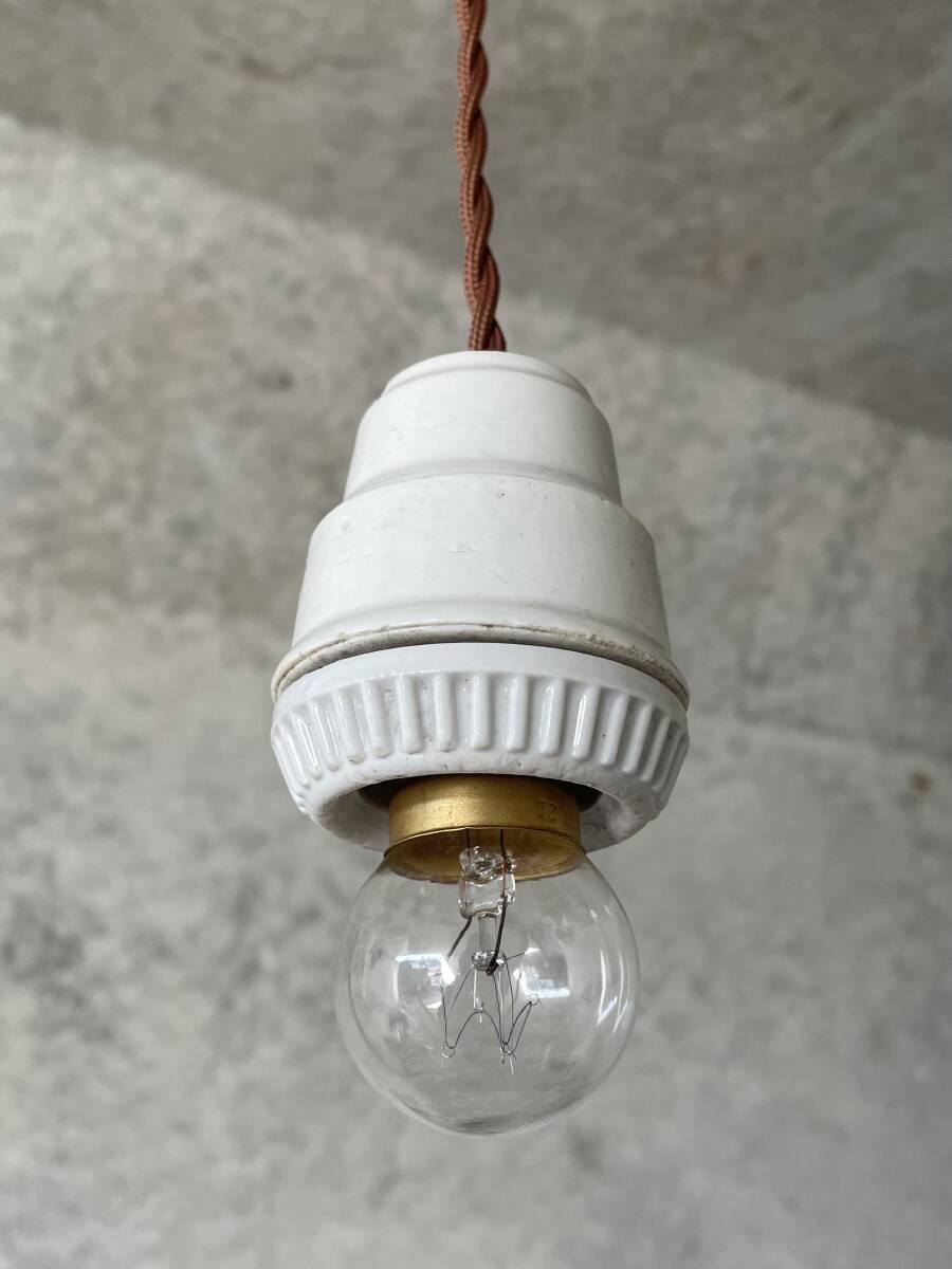 - T15. フランスアンティーク 大型 吊り下げ ライト ソケット ランプ 陶器 仏 北欧 照明 アトリエ インダストリアル カフェ レトロ