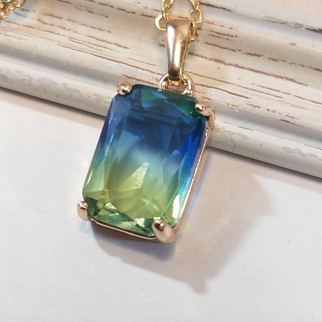 - 【これからの季節にピッタリ】ブルーとライトグリーンのジルコンのネックレス