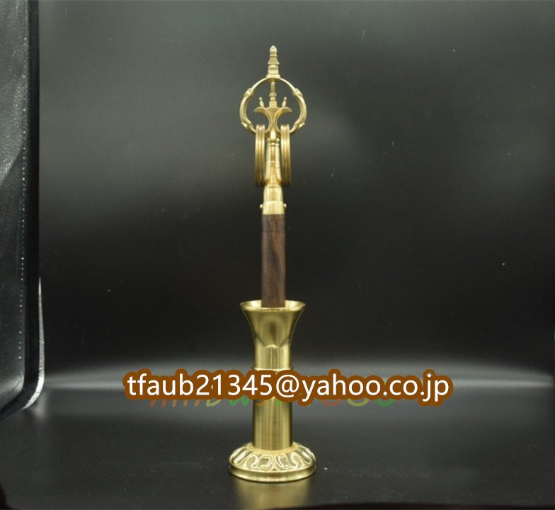 - 「密教法具 寺院用仏具」極上品 真言宗 錫杖 台座付 仏具 銅製 磨き仕上げ 長さ36cm