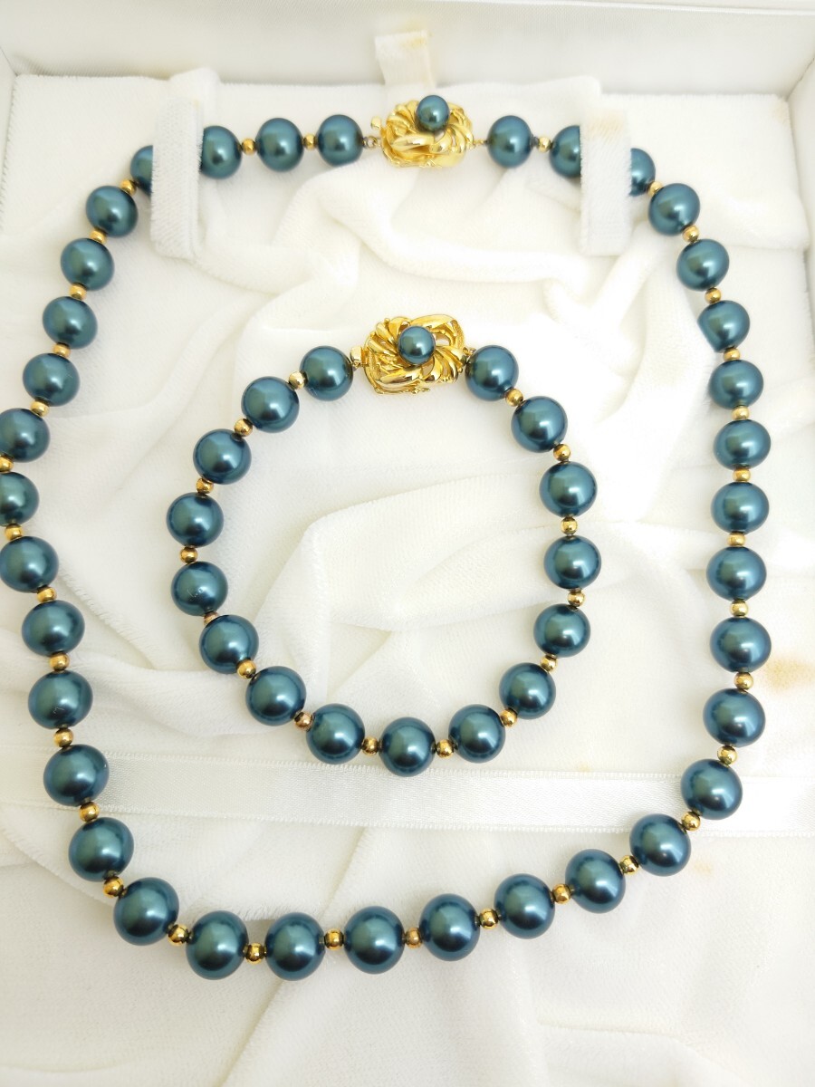 - 黒蝶 ピーコックグリーン ネックレス ブレスレット k14
