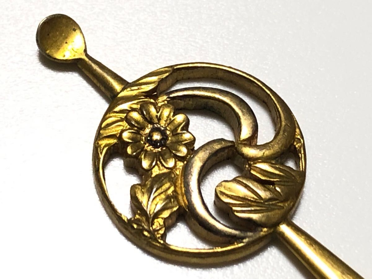 - アンティーク 彫金 6.5g 透かし花細工 平打ち簪【検/かんざし/金工】