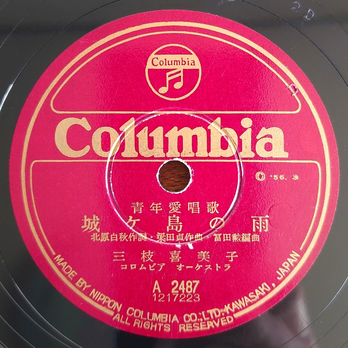 - 【SP盤レコード/薄ヒビ】Columbia A2487 青年愛唱歌/城ヶ島の雨/出船/三枝喜美子