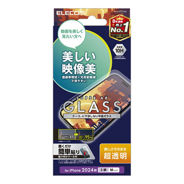 - iPhone16Pro用画面保護ガラスフィルム 動画映え/超透明タイプ 動画視聴の際などに光の映り込みに邪魔されずに視聴可能: PM-A24CFLGAR