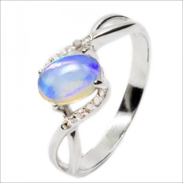 女性用プロモーションナチュラルオパールリング、4x6mm、925スターリングシルバー