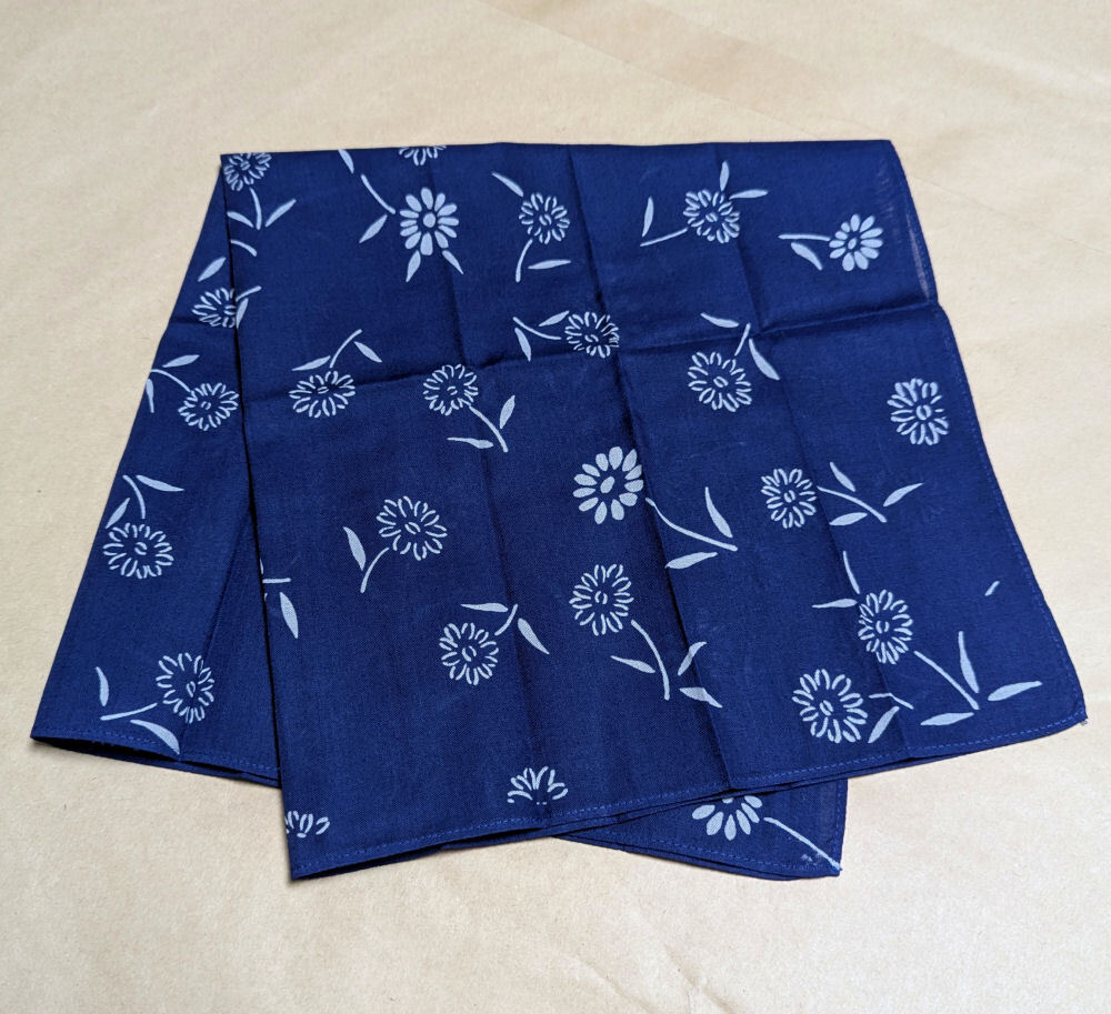 藍染ハンカチ 本場阿波藍染 小花■サイズ 44×44cm■素材 綿 100%■柄 小花■原産国 日本製本場阿波藍染で染め上げた藍染ハンカチです。藍染の深みのある濃厚な色彩。藍染製品は、藍の鮮やかで深みのある色合いが、心を癒してくれる色と好評です。風化とともに高まる香りには虫除けの効果もあり、また藍には皮膚を保護してくれる薬効・肌荒れ・冷え性を防ぐ効果もあると昔からいわれております。【藍染豆知識】藍染製品は、藍の鮮やかで深みのある色合いが、心を癒してくれる色と好評です。藍染めは名前のとおり、藍色の染色を行うことができ、色が褪せにくいという優れた特徴を持ちます。天然藍は木綿によく染まり、日光、水洗いに強いため、洗えば洗うほどに美しい深みと落ち着きのある風合いが増してきます。風化とともに高まる香りには虫除けの効果もあり、また藍には皮膚を保護してくれる薬効・肌荒れ・冷え性を防ぐ効果もあると昔からいわれており、衣料などに大変適しております。