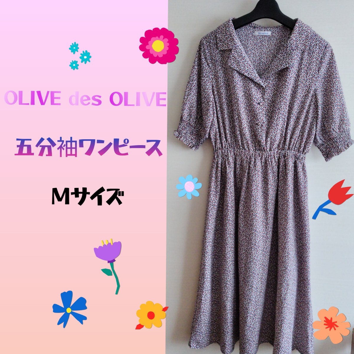 > 花柄 夏 秋 開襟 ワンピース ワンピ オリーブ デ オリーブ M OLIVE des OLIVE ウエスト ゴム 可愛らしい 安 ロング スカート