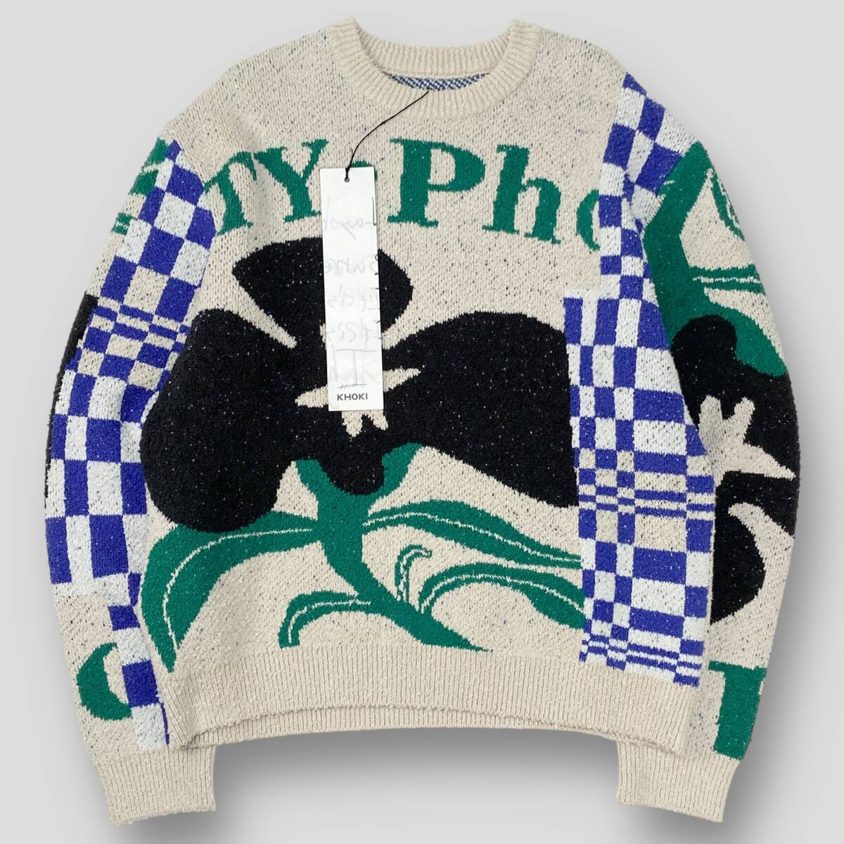 > 新品 KHOKI / コッキ 24AW Intarsia-knit jumper / インターシャ ニット ジャンパー 24fw-k-01 2 SSM4885 White ジャガード クルーネック