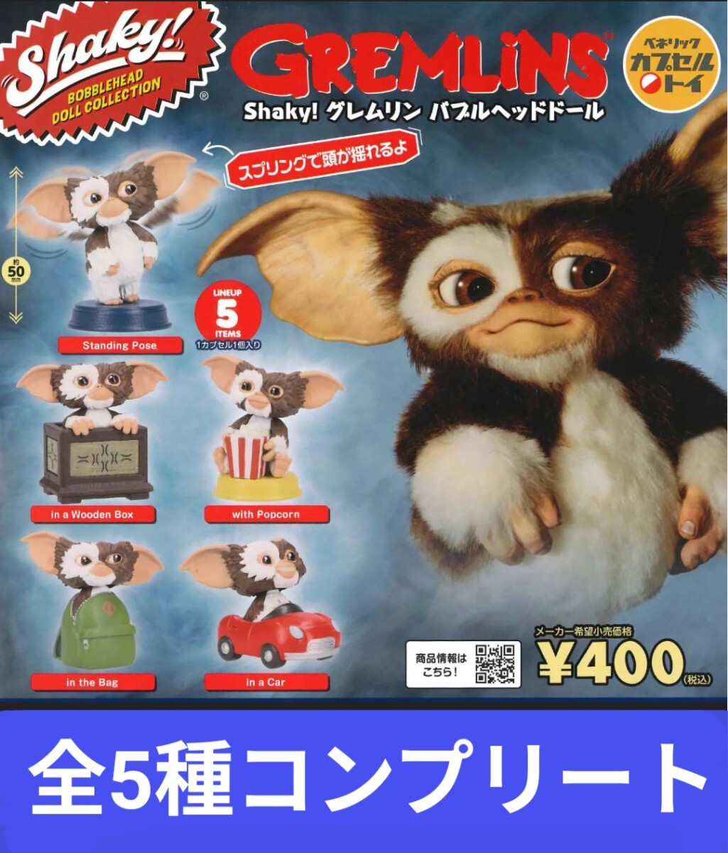 - シェイキー! Shaky! グレムリン GREMLiNS ギズモ バブルヘッドドール 全5種コンプリート 木箱/ポップコーン/リュック/車 ガチャ ガチャ