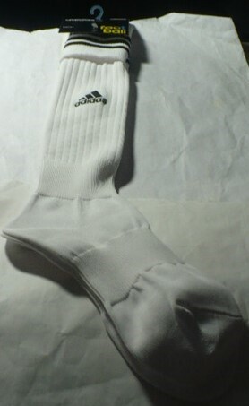 - 紙タグ付き新品未使用品 adidas【アディダスジャパン(株)】製サッカーソックス(ストッキング)QR3STG SOCKS 白×黒ライン サイズ25~27㎝