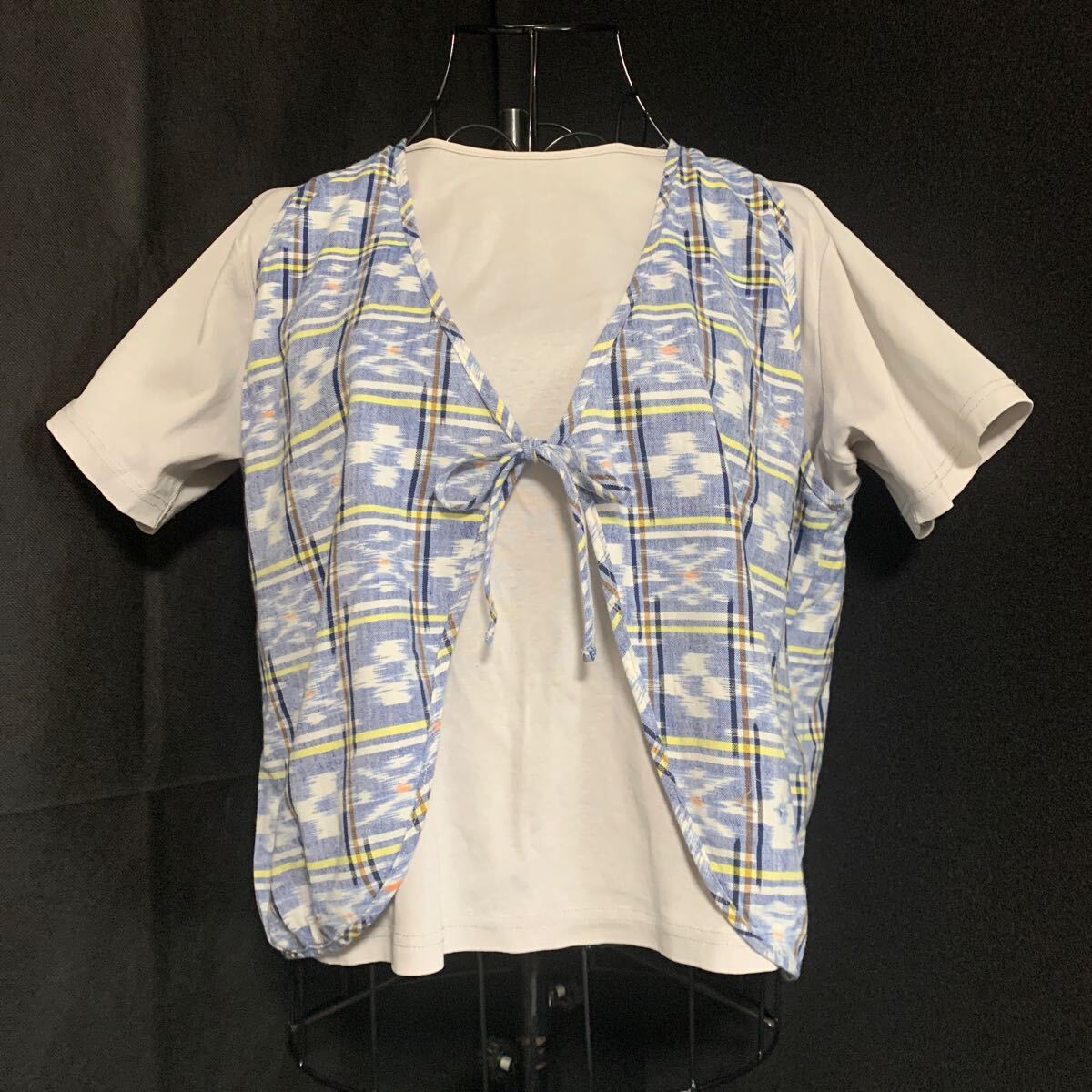 - ☆儀右ヱ門 ギエモン 儀右エ門 GIEMON 半袖 チュニック シャツ スモーク リメイク素材 ハンドメイド 古布 絣 パッチワーク かすり(A-1264)