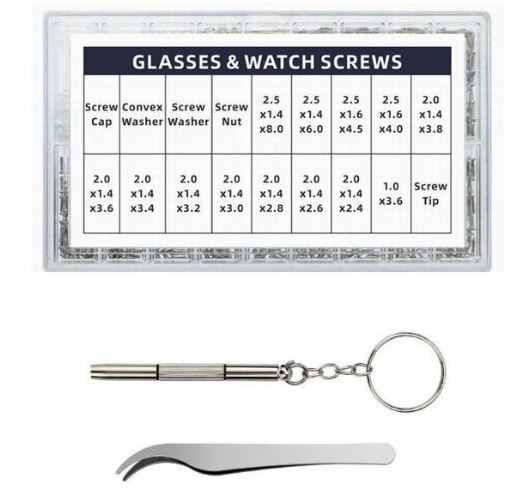 - 送料無料 メガネ ネジセット 修理 小ネジ 1000個入り 眼鏡修理 ドライバー と ピンセット とネジ ナット も付属 サングラス