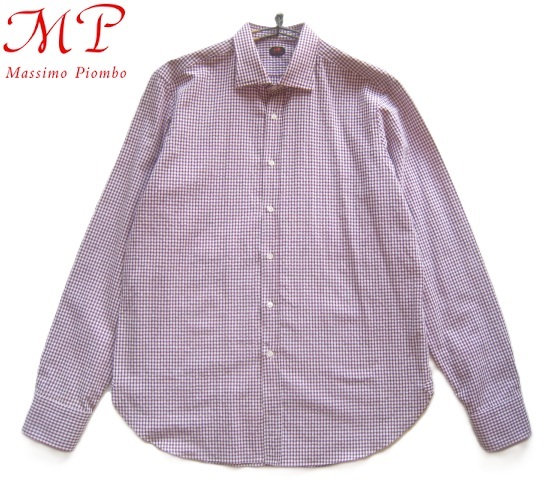> 極上イタリア製!!エムピー ディ マッシモピオンボ MP di Massimo Piombo*ギンガムチェック柄シャツ 43 実寸XL 茶×淡いピンク