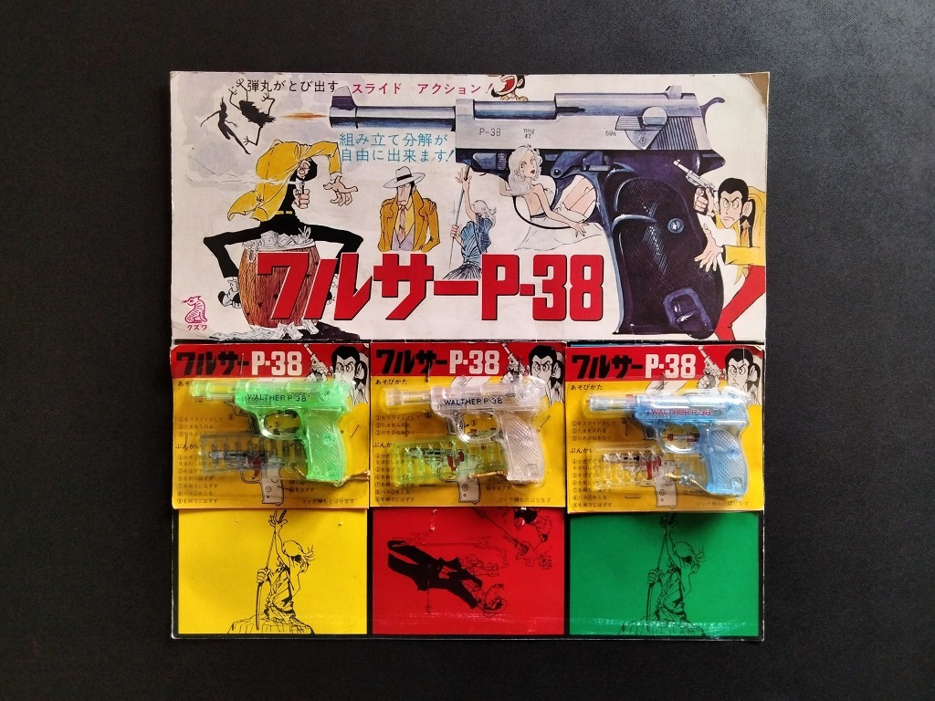 - 当時物 ルパン三世 ワルサーP38 スライドアクション拳銃 弾丸発射 未使用 3pセット !! ☆ スケルトン 分解組立 不二子 パチ モンキーパンチ