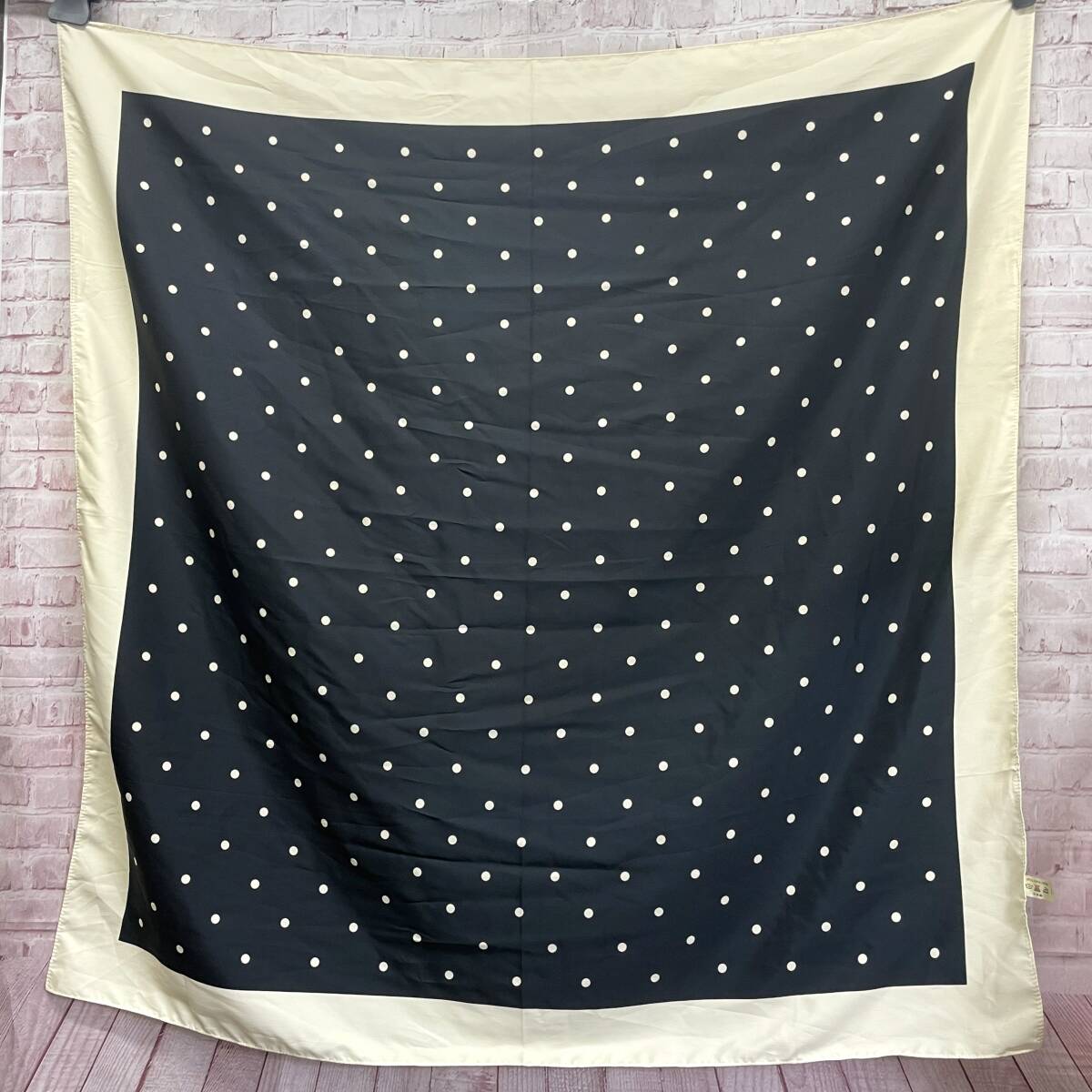 - 大判 スカーフ バンダナ ブラック×アイボリー 水玉 ドット エレガント ラグジュアリー