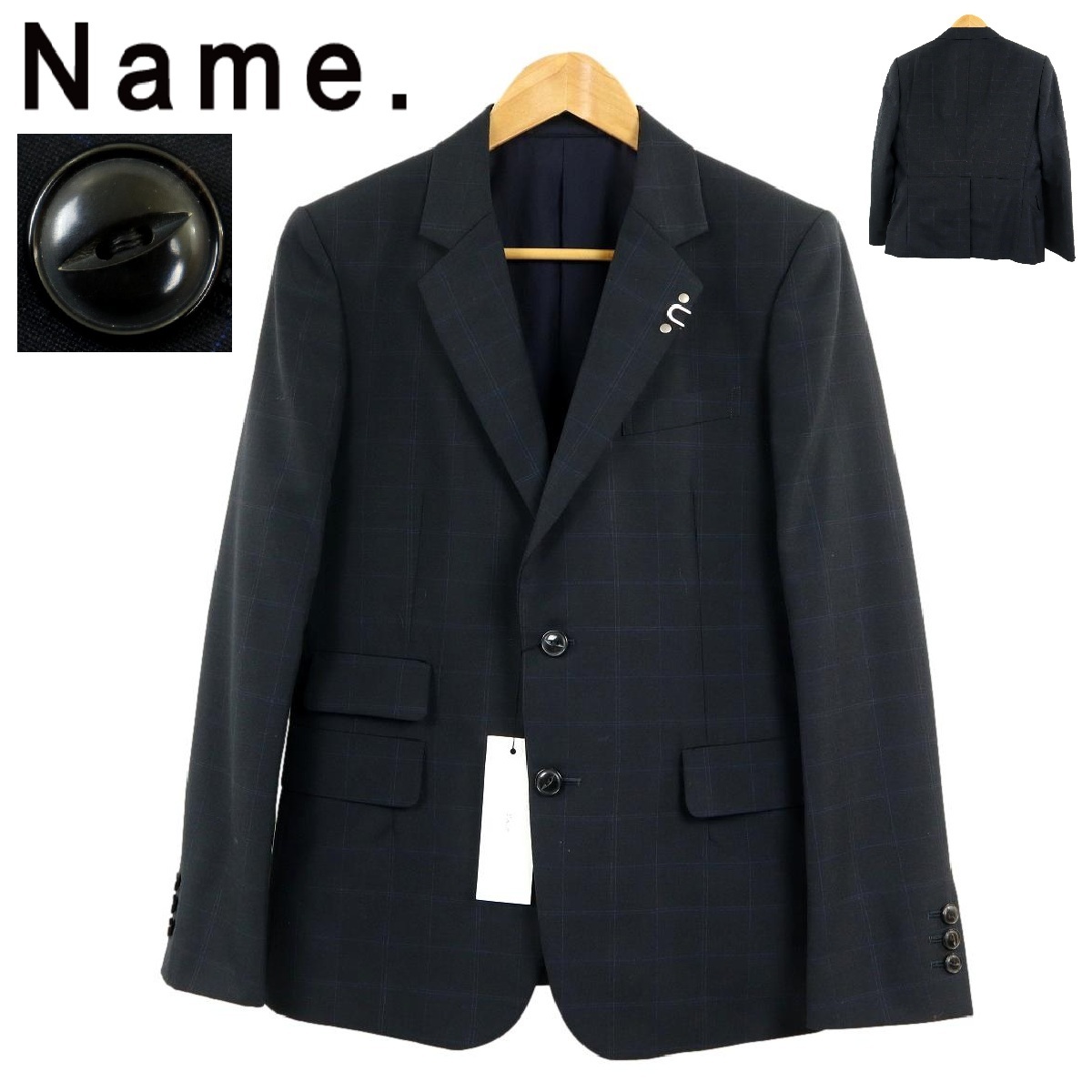 > 【B3287】【新品】【定価70,000円】【モヘヤ混】Name. ネーム テーラードジャケット ウールジャケット チェック柄 NMJK-14SS-002 猫目釦
