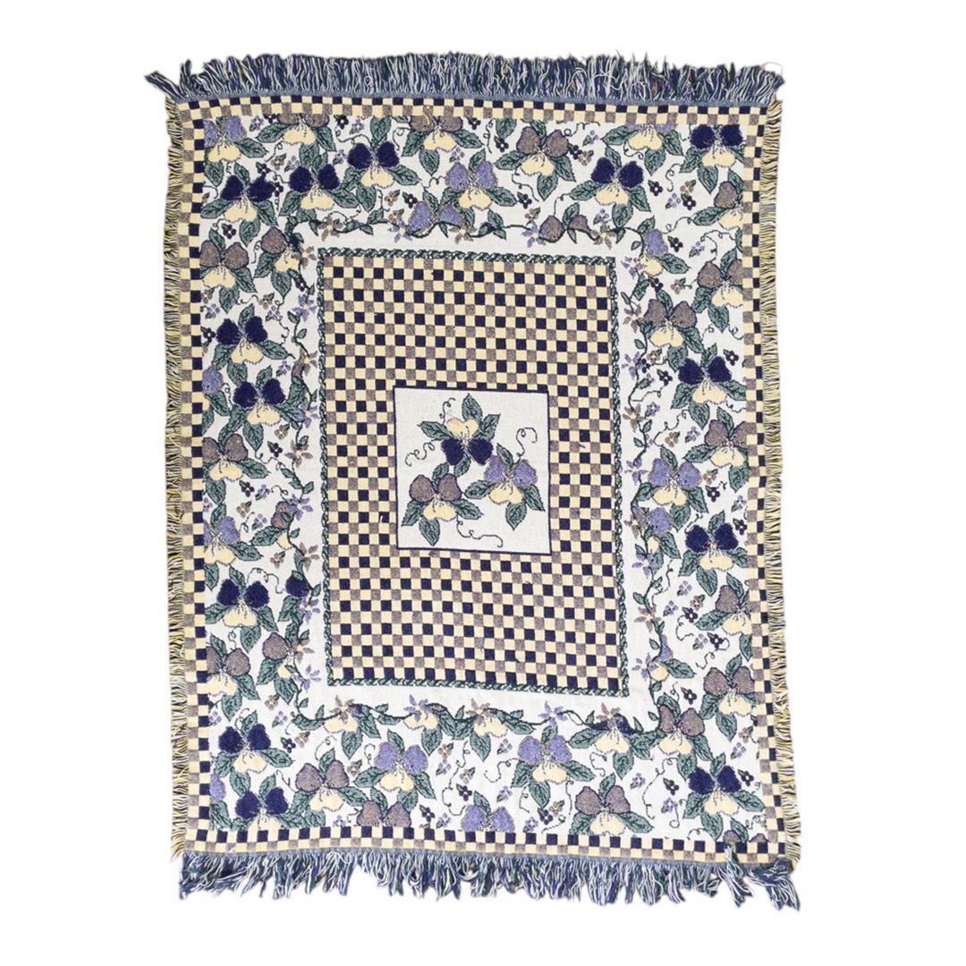 - vintageラグ カーペット フラワー チェック 902