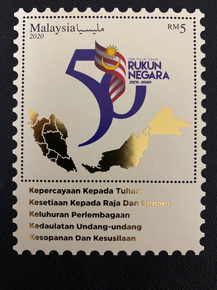 - マレーシア 国家大綱の宣言50年 切手タイプのシート 変わり種 小型シート1種完 未使用 NH