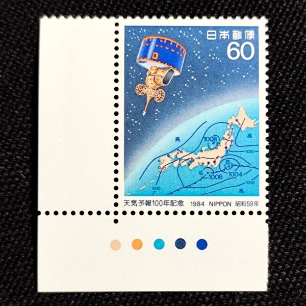 - [25012639]【天気予報100年記念】単片 CM・カラーマーク付「気象衛星と天気図」60円 1984年発行 美品
