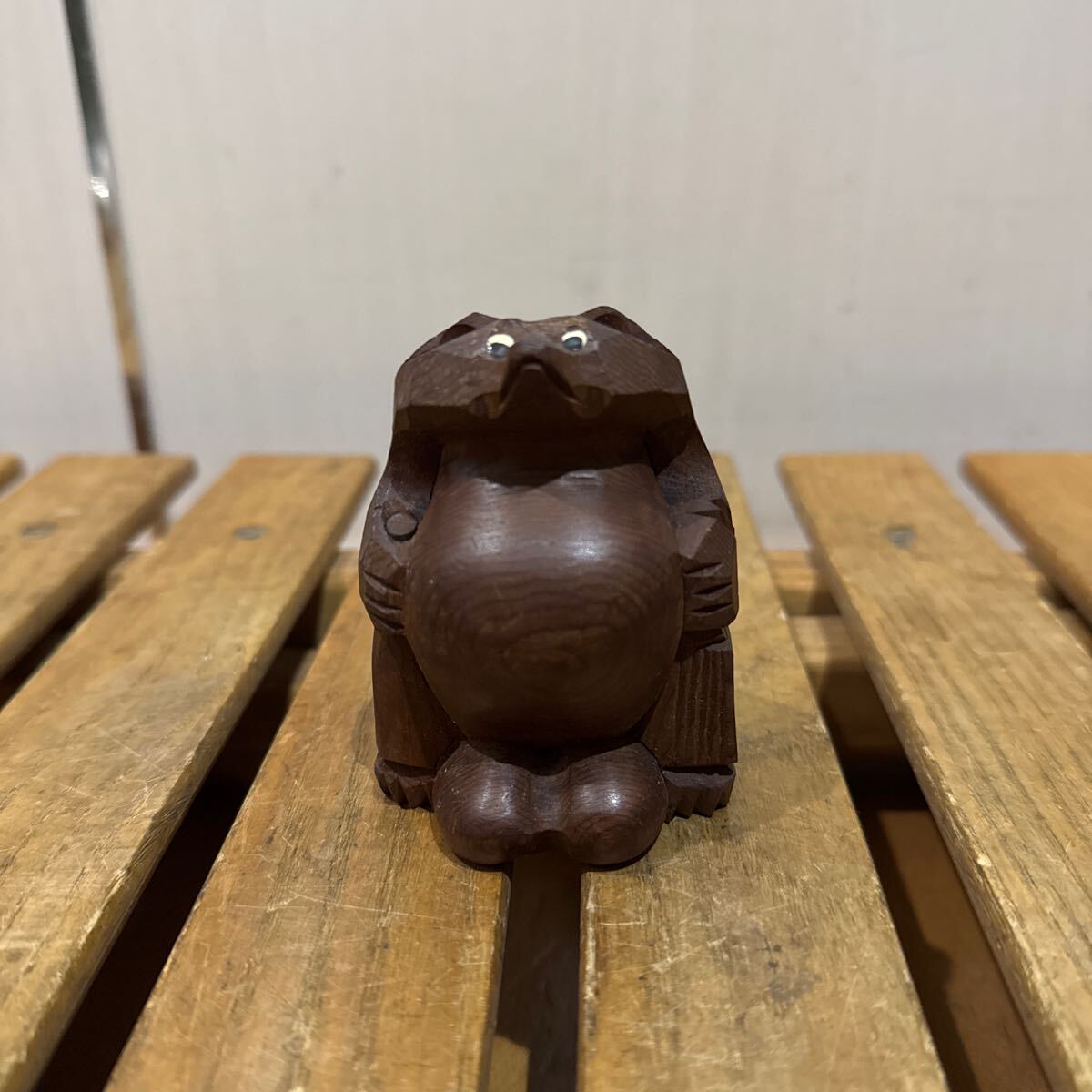 - 珍品 たぬき 狸 木彫り置物 民芸 ビンテージ!