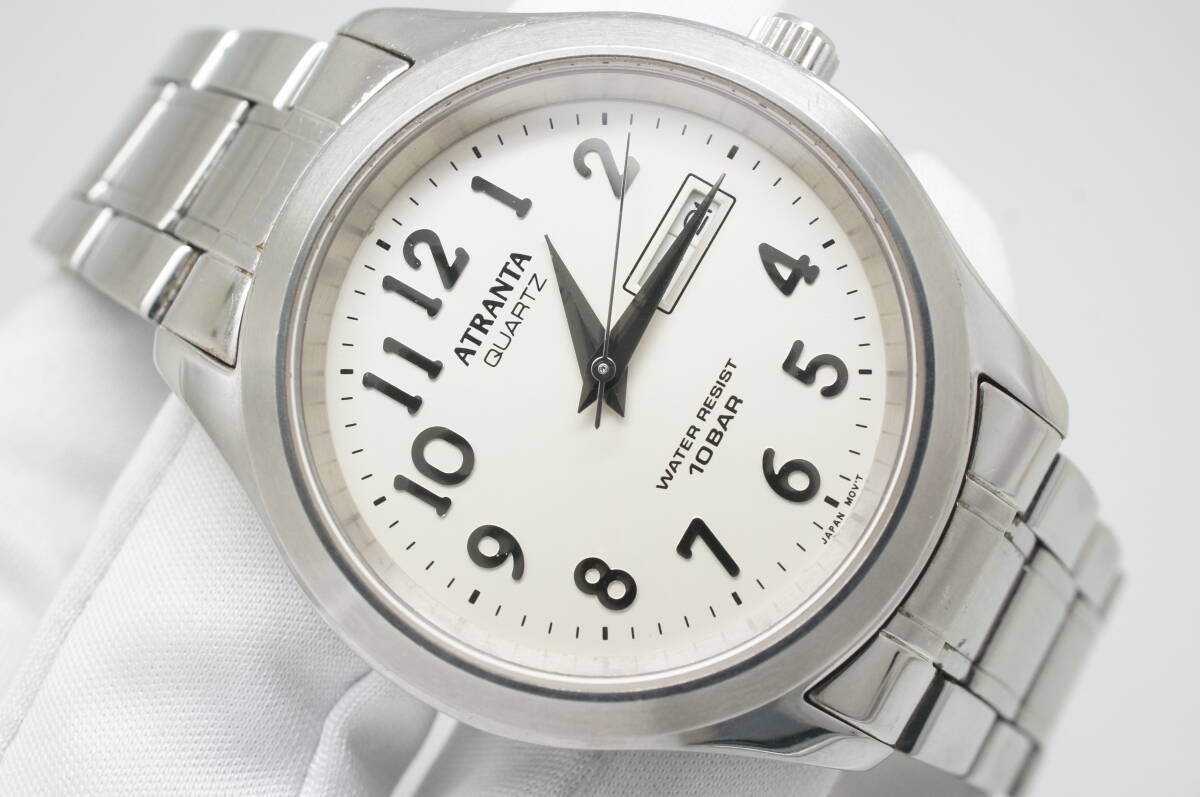 - A110●作動良好 RICOH リコー ATRANTA アトランタ ラウンドケース型 デイデイト メンズ腕時計 シルバー お洒落 クォーツ