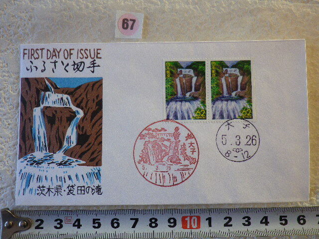 - FDC ふるさと切手 袋田の滝・茨城 2貼2消 解説書有 松屋●67●同梱大歓迎