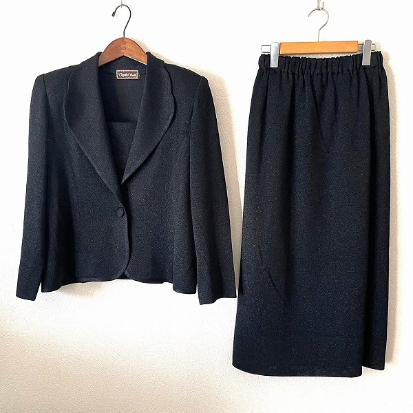 - #wnc サイトウトヨコ 斉藤都世子 スカートスーツ セットアップ 黒系 ニット ラメ レディース [928031]