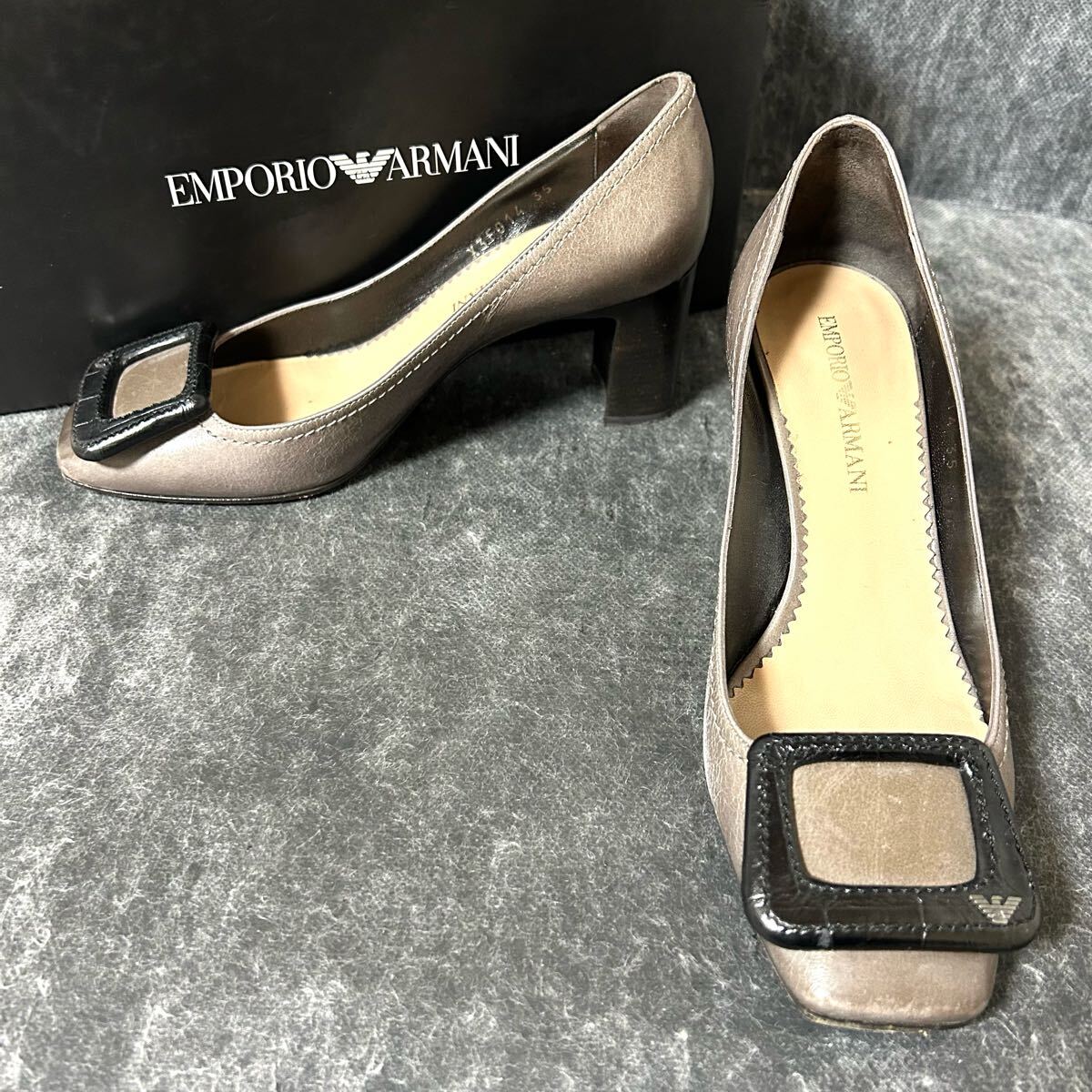 - 【BOX付】EMPORIO ARMANI エンポリオ アルマーニ ヒールパンプス プレート ロゴ パンプス 35 22cm相当 グレー *DP