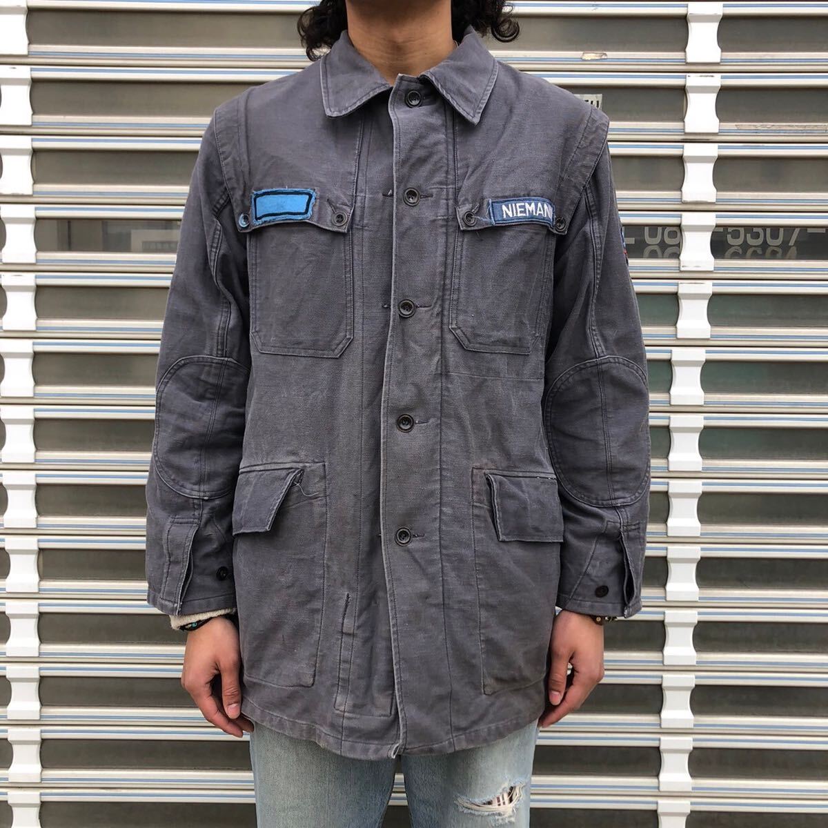 - 80s ドイツ軍 実物 THW ミリタリー 技術復旧団 モールスキン M ヴィンテージ ロガー ジャケット フィール 70s グレー BUND 軍物 GDB