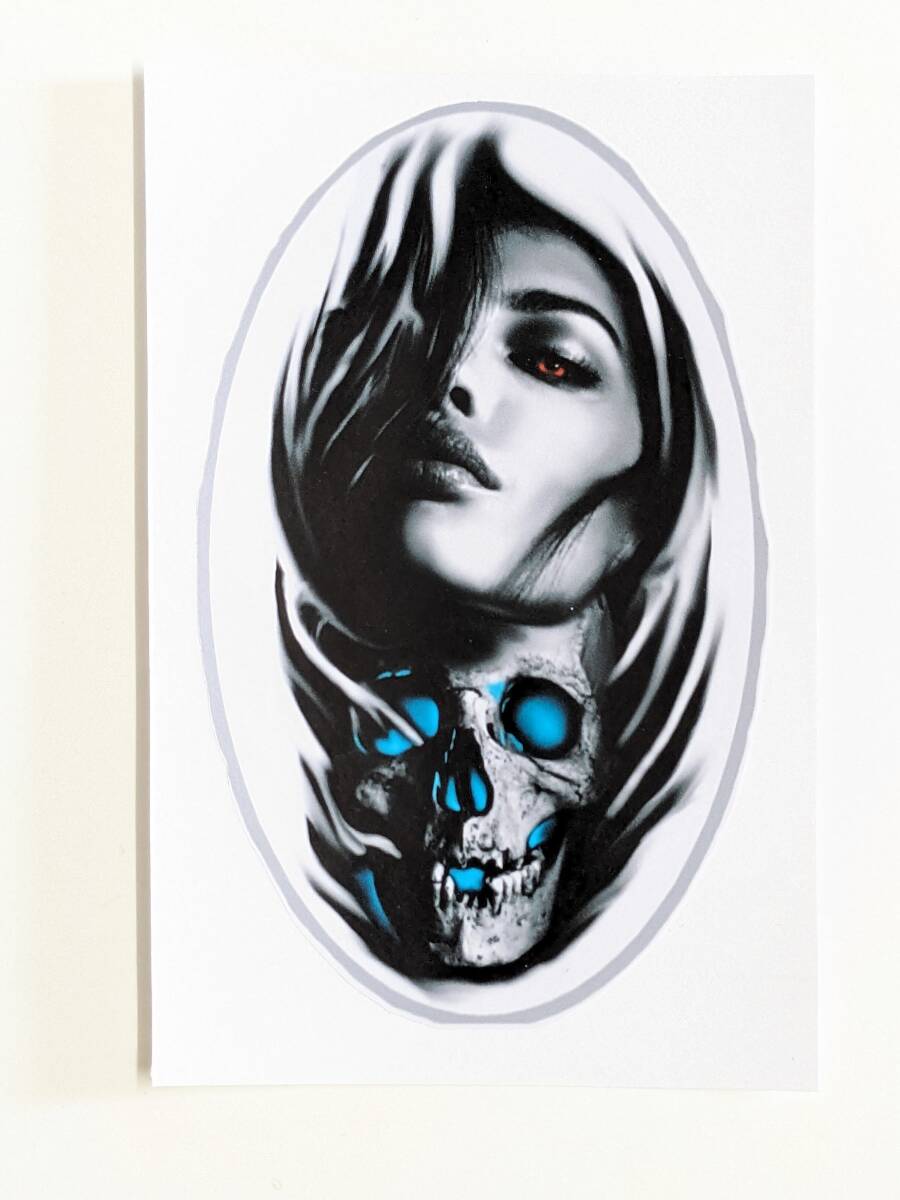 - 【激渋♪120mmx74mmドクロ&美女 楕円】スカルステッカー 骸骨ステッカー ヘルメット バイク・クルマ ガレージ