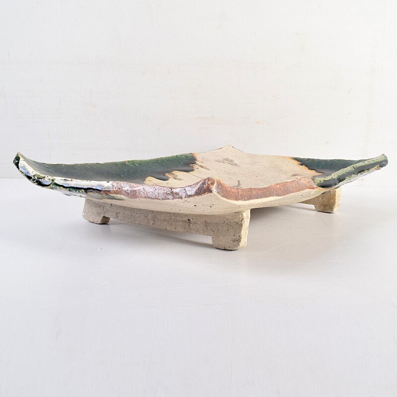 - 織部焼 鳥文 俎大皿 銘「好日」 清水公照極め箱 本物返品 OK250127−13