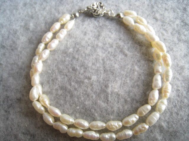 - [SAMU]素敵!!照り抜群 淡水真珠2連 長さ19.5cmブレスレット新品!