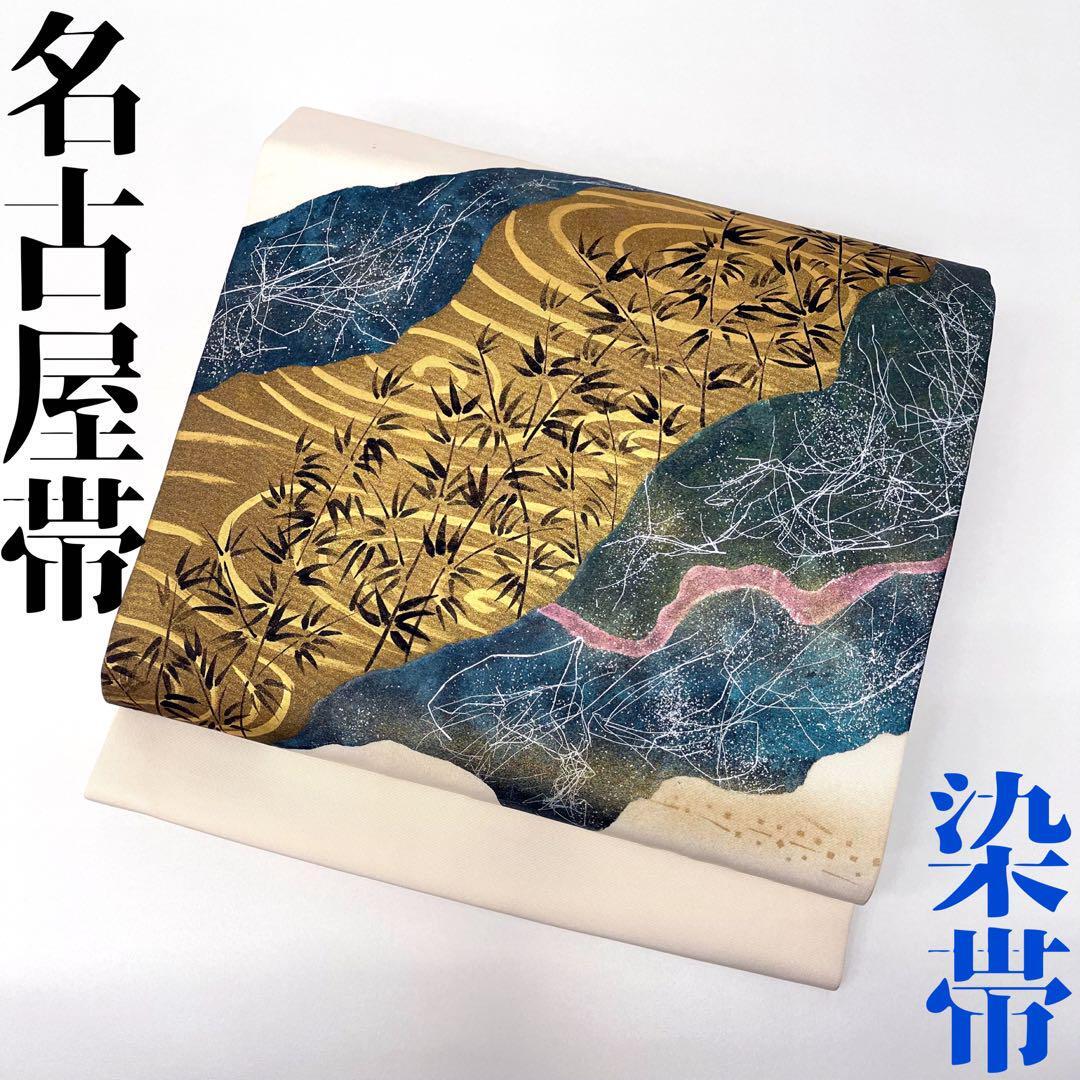 > 【着物と帯 時流】N25112◆正絹 九寸名古屋帯◆染帯 道長取り アイボリー