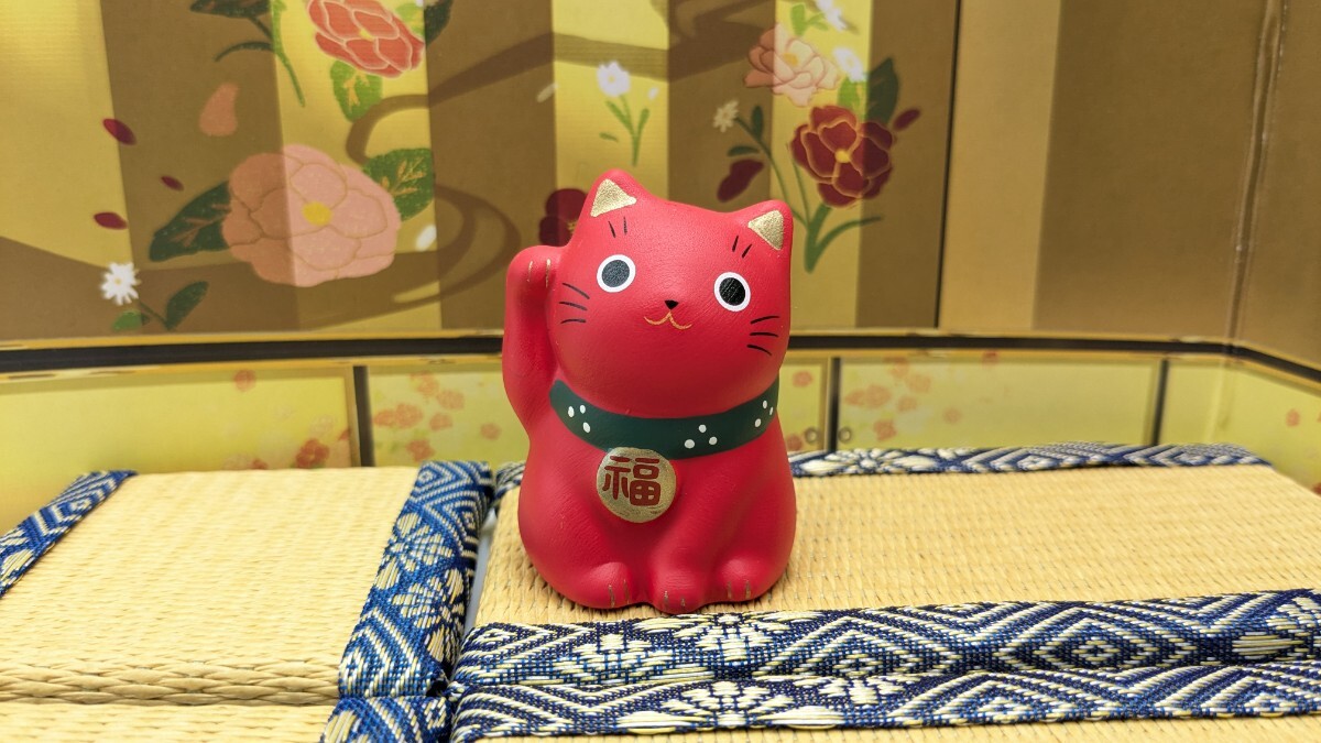 - 縁起物 招き猫 錦彩福おいで招き猫 小 赤猫 無病息災