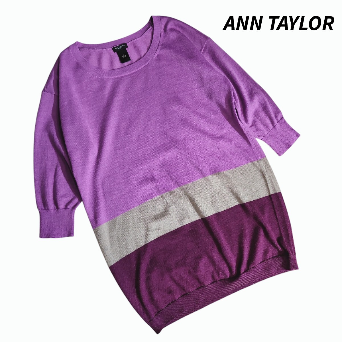 - ANN TAYLOR ゆったりデザイン・チュニック丈・薄手ニット 表記サイズS ピンクがかった紫・グレージュ・ワインレッド 68470