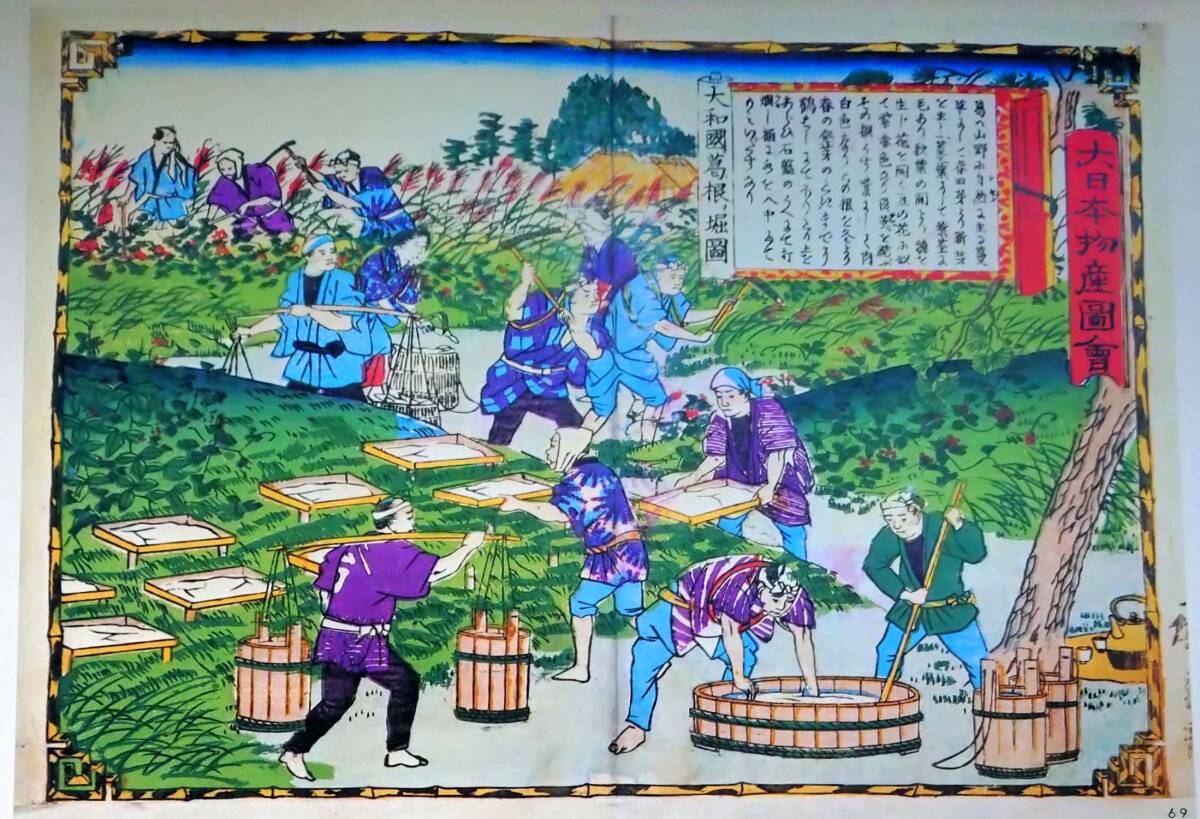 - f2412111069〇彩色画浮世絵 印刷 大日本物産図会 1枚 奈良県 大和葛根掘の図 一立斎広重明治10年原画作 光彩社昭和54年印刷