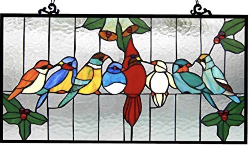 - ティファニーグラス 仲良く集まる小鳥たち クロエ・ライティング製 インコ ステンドグラスパネル贈り物(輸入品