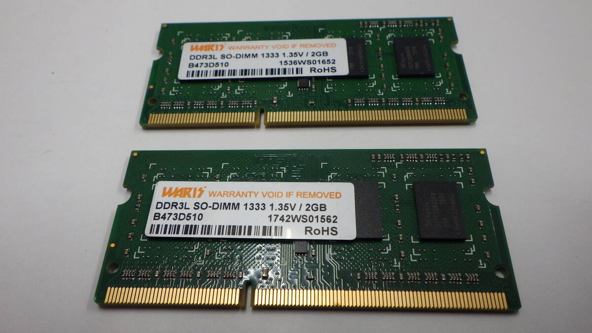 - *ノートパソコン用 DDR3 メモリ DDR3L SO-DIMM 1333 1.35 2GBx2枚 計4GB 中古動作品