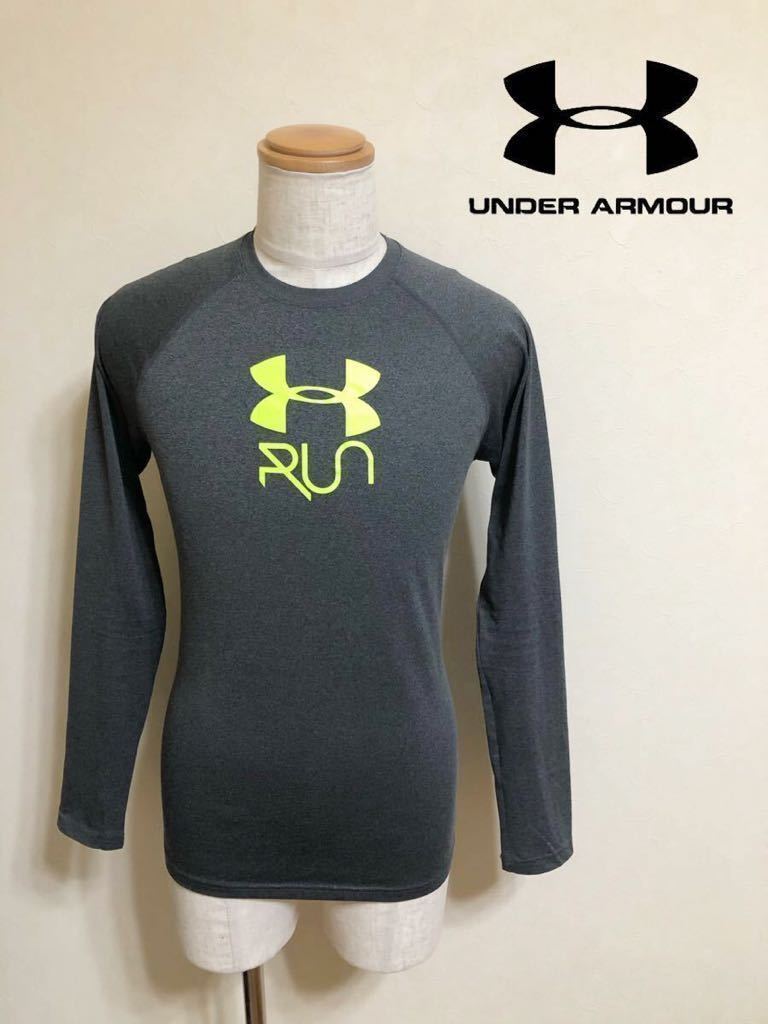 - 【良品】 UNDER ARMOUR HG FITTED RUN アンダーアーマー ヒートギア ランニング ウェア トップス サイズSM 長袖 チャコールグレー