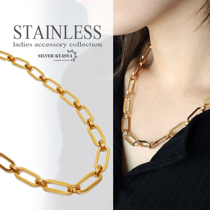 - ステンレス チェーンネックレス レディース ゴールド 18KGP 金属アレルギー 45cm