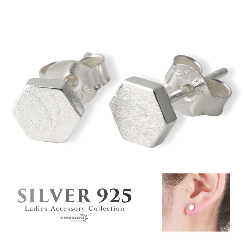 > シルバー925 レディースピアス スタッドピアス 多角形 銀色 シルバー ホワイト イヤリング 金属アレルギー 両耳用 2点