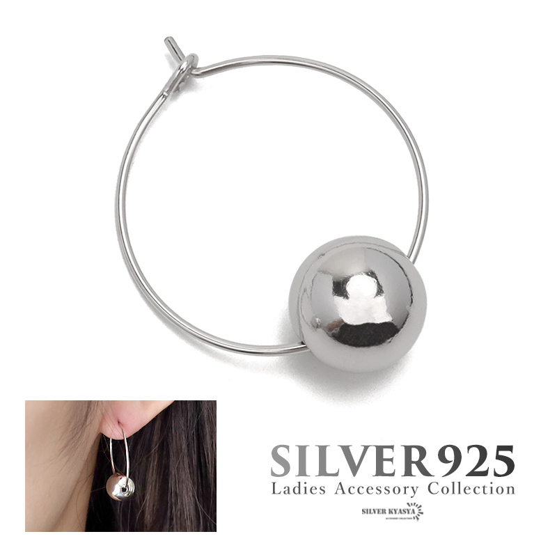 - ピアス 金属アレルギー レディース シルバー925 フープピアス ボール 丸玉 オーブ シルバー 銀 片耳用