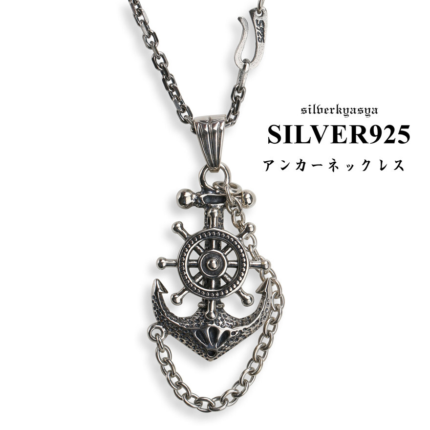 - シルバー925素材 アンカーネックレス 925 ペンダント 錨 ネックレス アクセサリー アンカーチェーン50cm ボックス付属