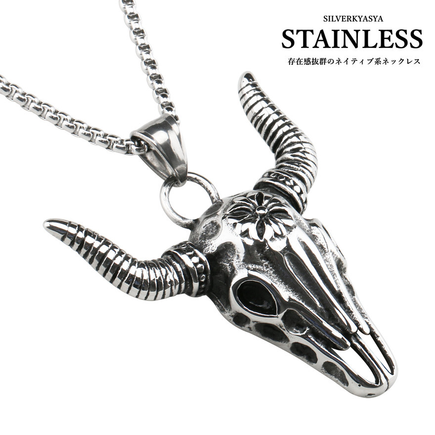 - ステンレス ネックレス ペンダント メンズ バッファロー ネックレス シルバー 銀色